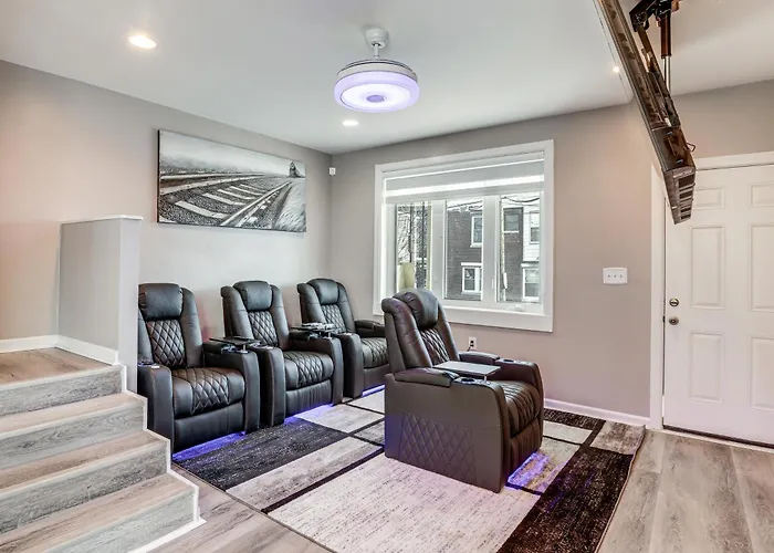 Luxe Philly Home With Indoor Jacuzzi And 100-Inch Tv! comprises a fully-fitted kitchen with an oven. This Philadelphia accommodation is in proximity to restaurant Athenian Restaurant. This accommodation is 16 km from Philadelphia, PA train station, which makes tourist attractions in Philadelphia easily accessible.
